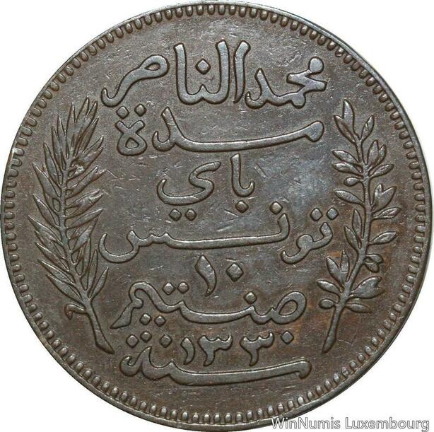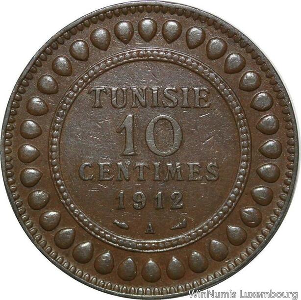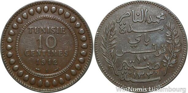 R8638 Tunisia 10 Centimes Muhammad al-Nasir Bey AH 1330 1912 A Paris AU >Offer