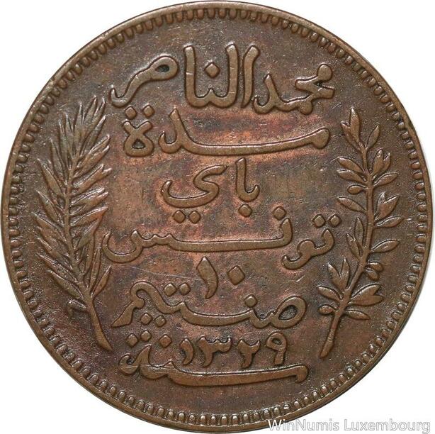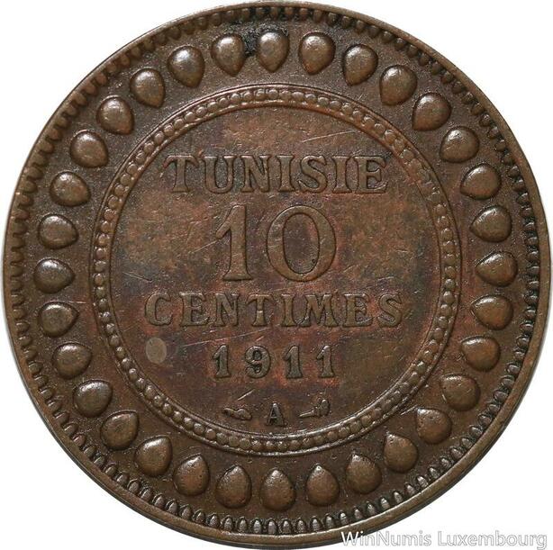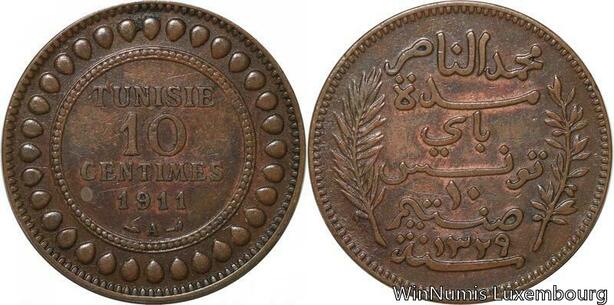 R8640 Tunisia 10 Centimes Muhammad al-Nasir Bey AH 1329 1911 A Paris -> M offer