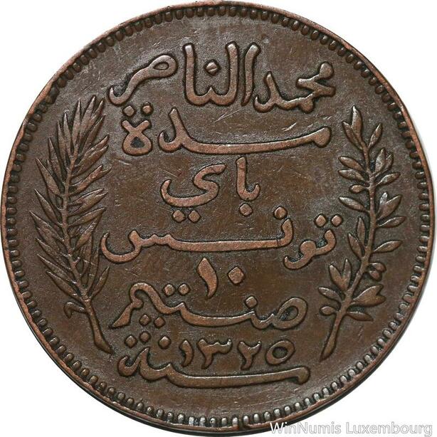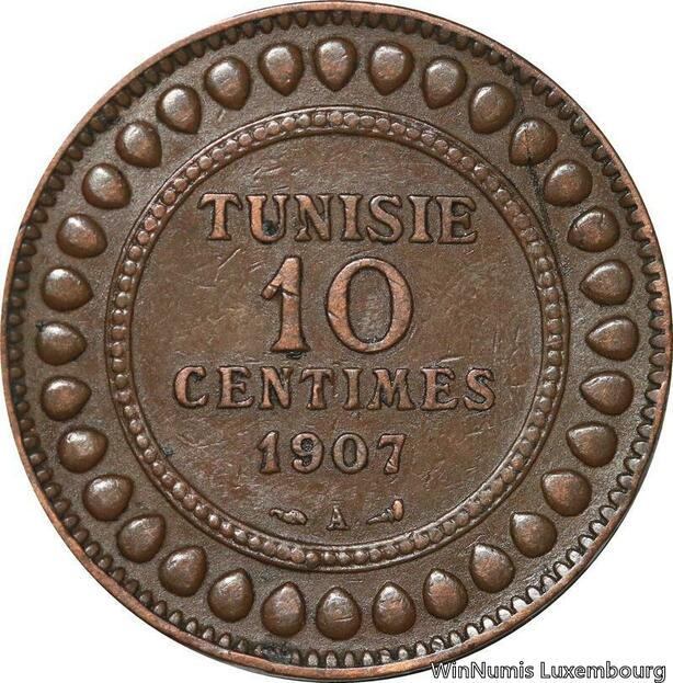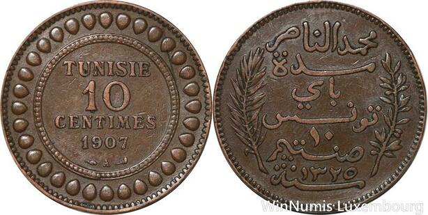 R8655 Tunisia 10 Centimes Muhammad al-Nasir Bey AH 1327 1907 A Paris -> M offer
