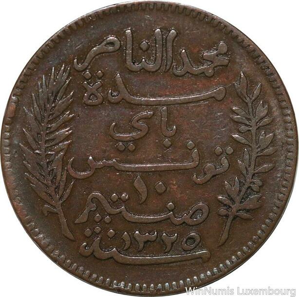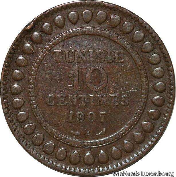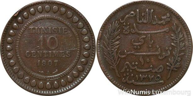 R8661 Tunisia 10 Centimes Muhammad al-Nasir Bey AH 1327 1907 A Paris -> M offer