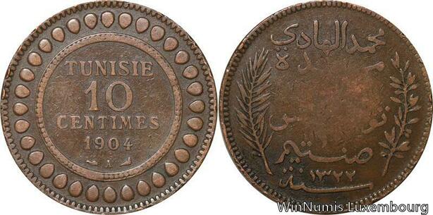 R8671 Tunisia 10 Centimes Muhammad al-Nasir Bey AH 1322 1904 A Paris -> M offer