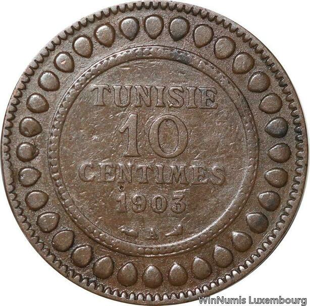 R8673 Tunisia 10 Centimes Muhammad al-Nasir Bey AH 1321 1903 A Paris -> M offer