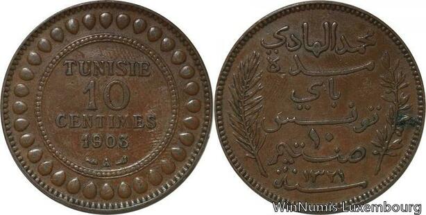 R8674 Tunisia 10 Centimes Muhammad al-Nasir Bey AH 1321 1903 A Paris -> M offer
