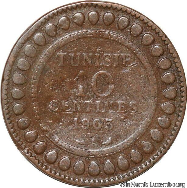 R8675 Tunisia 10 Centimes Muhammad al-Nasir Bey AH 1321 1903 A Paris -> M offer