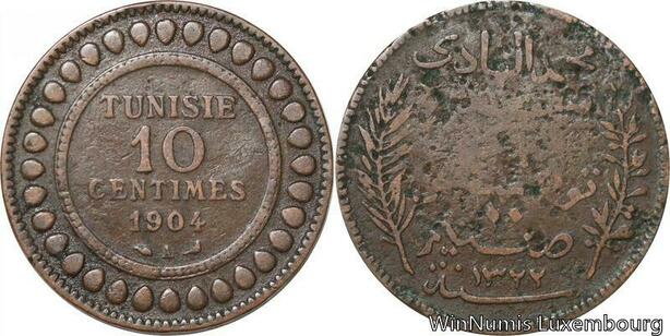R8678 Tunisia 10 Centimes Muhammad al-Nasir Bey AH 1322 1904 A Paris -> M offer