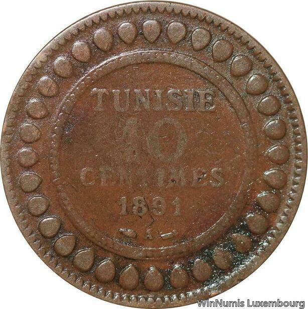R8679 Tunisia 10 Centimes Muhammad al-Nasir Bey AH 1308 1891 A Paris -> M offer