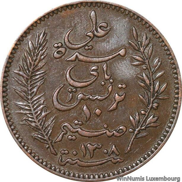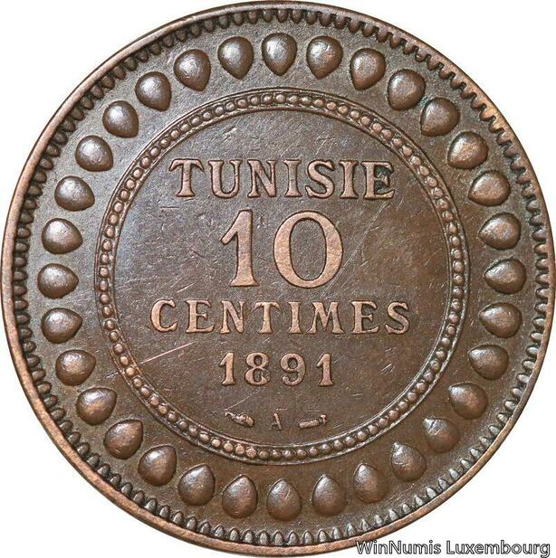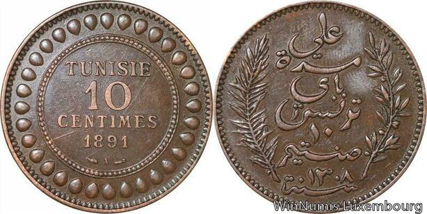 R8681 Tunisia 10 Centimes Muhammad al-Nasir Bey AH 1308 1891 A Paris AU >Offer