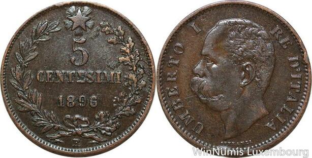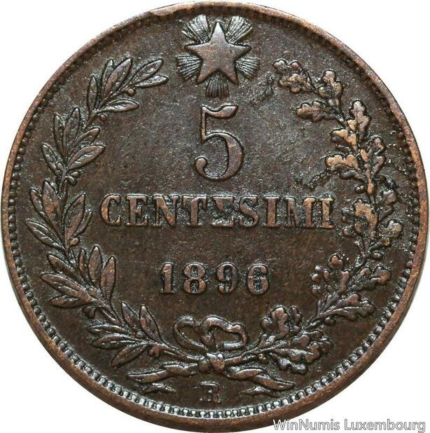 R8715 Rare Italy 5 Centesimi Umberto I 1896 R Roma XF -> Make offer