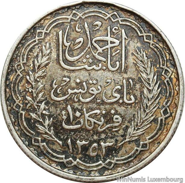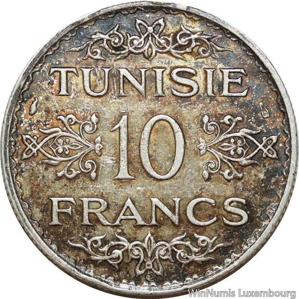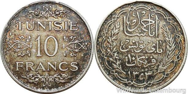 R8722 Tunisia 10 Francs Ahmad Pasha French Protectorat AH 1353 1935 Paris Silver