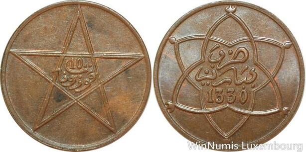 R8738 Morocco 10 Mazunas Yusuf AH 1330 1912 Paris AU -> Make offer