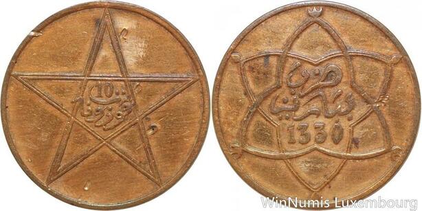 R8739 Morocco 10 Mazunas Yusuf AH 1330 1912 Paris -> Make offer