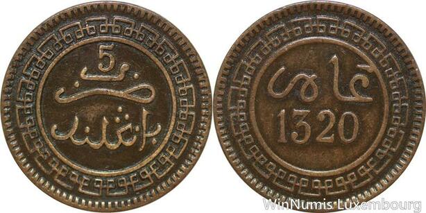 R8747 Morocco 5 Mazunas Abd al-Aziz AH 1320 1903 Birmingham -> Make offer