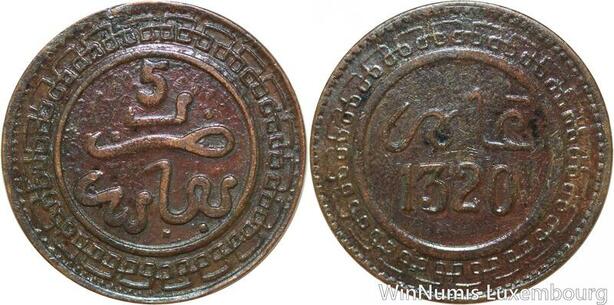 R8750 Morocco 5 Mazunas Abd al-Aziz AH 1320 1903 Fes -> Make offer