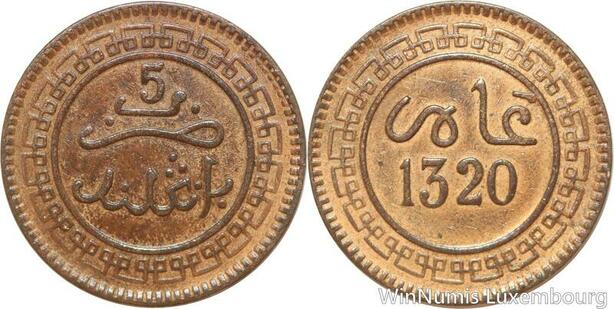 R8751 Morocco 5 Mazunas Abd al-Aziz AH 1320 1903 Birmingham AU -> Make offer