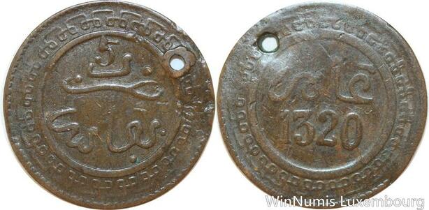 R8761 Morocco 5 Mazunas Abd al-Aziz AH 1320 1903 Fes -> Make offer