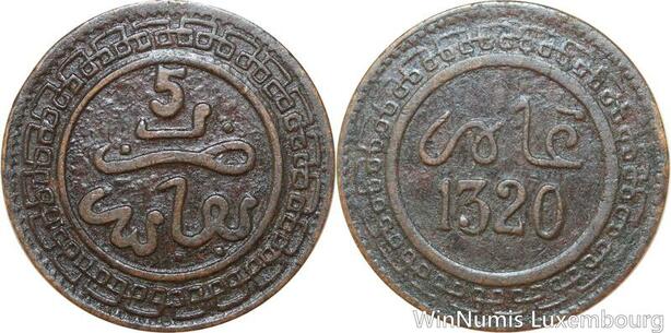 R8762 Morocco 5 Mazunas Abd al-Aziz AH 1320 1903 Fes -> Make offer