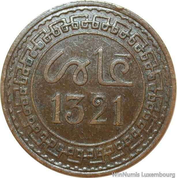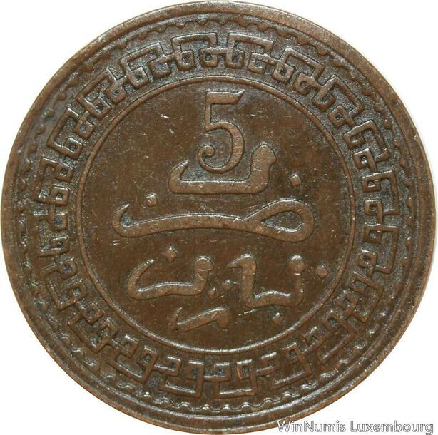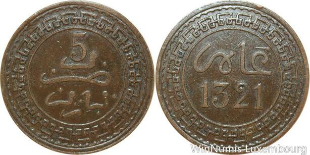 R8765 Morocco 5 Mazunas Abd al-Aziz AH 1321 1903 Paris -> Make offer