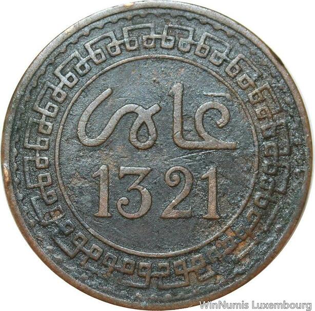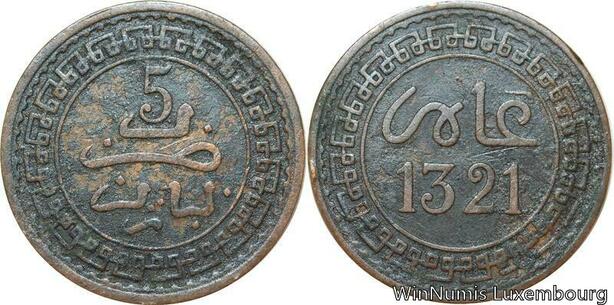 R8768 Morocco 5 Mazunas Abd al-Aziz AH 1321 1903 Paris -> Make offer