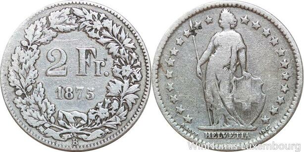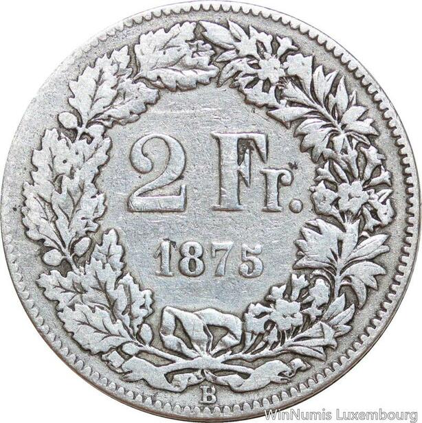 R8776 Switzerland 2 Francs Helvetia 1875 B Berne Silver -> Make offer