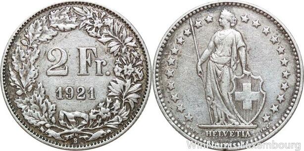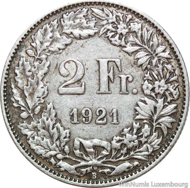 R8779 Switzerland 2 Francs Helvetia 1921 B Berne Silver -> Make offer