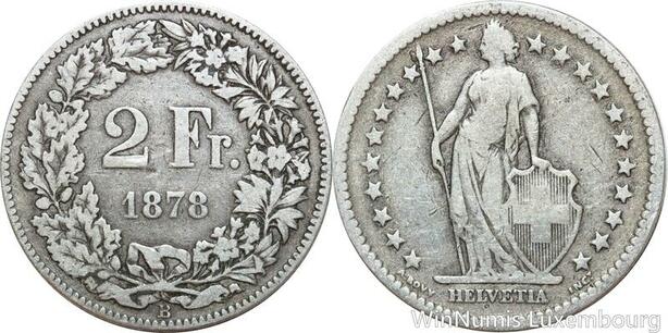 R8781 Switzerland 2 Francs Helvetia 1878 B Berne Silver -> Make offer