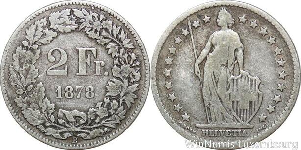 R8784 Switzerland 2 Francs Helvetia 1878 B Berne Silver -> Make offer