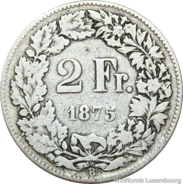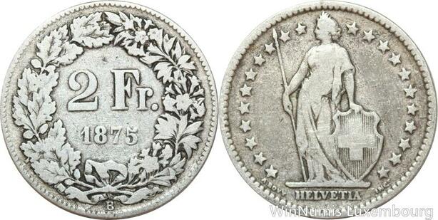 R8787 Switzerland 2 Francs Helvetia 1875 B Berne Silver -> Make offer