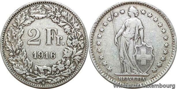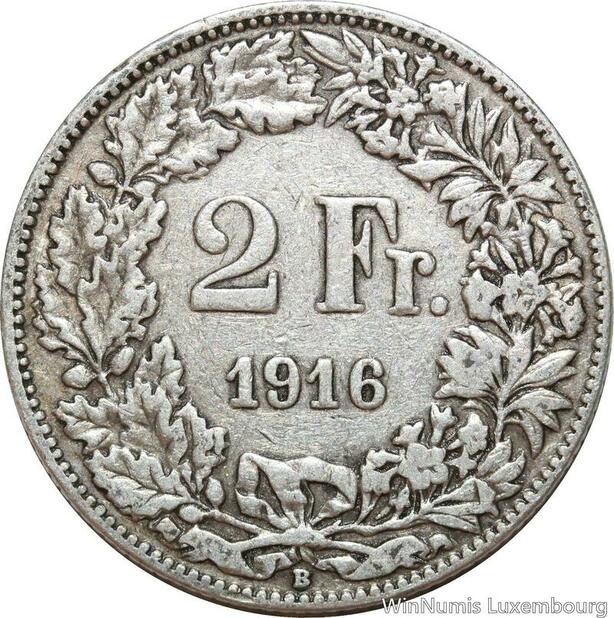 R8791 Switzerland 2 Francs Helvetia 1916 B Berne Silver -> Make offer