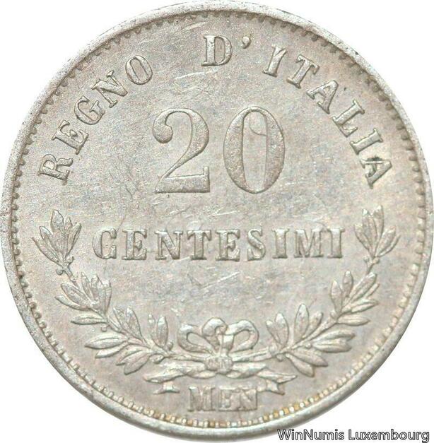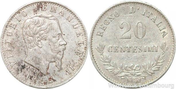 R8850 Italy 20 Centesimi Vittorio Emanuele II 1863 M BN Milan Silver -> M offer