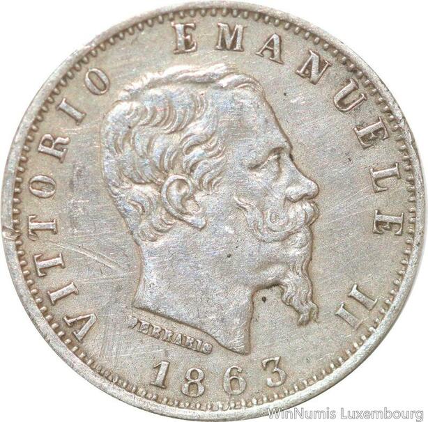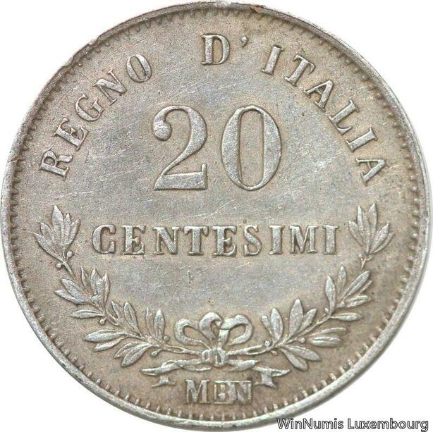R8852 Italy 20 Centesimi Vittorio Emanuele II 1863 M BN Milan Silver -> M offer