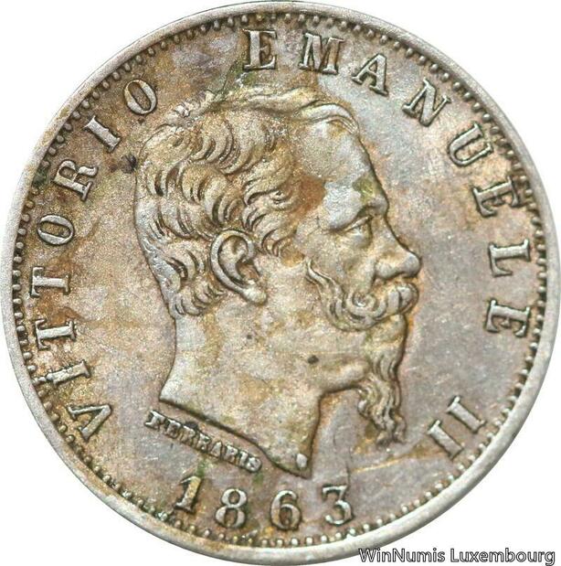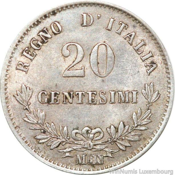 R8853 Italy 20 Centesimi Vittorio Emanuele II 1863 M BN Milan Silver AU >Offer