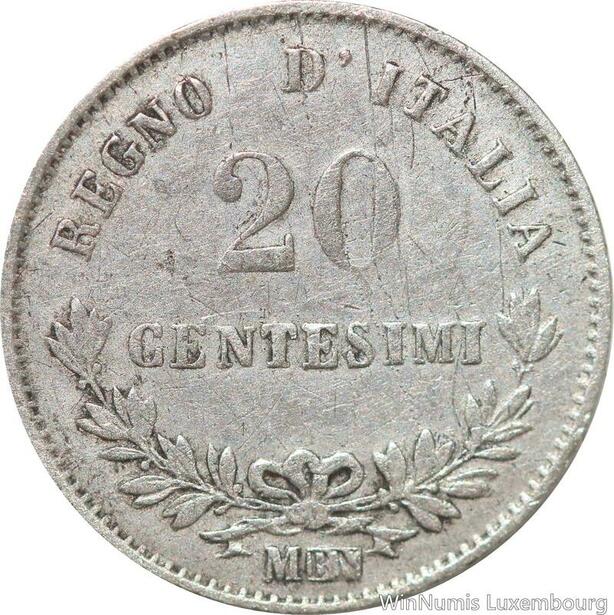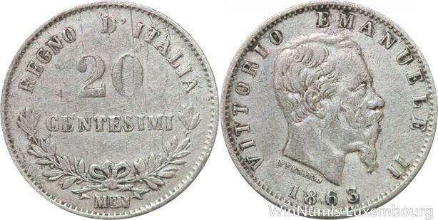 R8856 Italy 20 Centesimi Vittorio Emanuele II 1863 M BN Milan Silver -> M offer