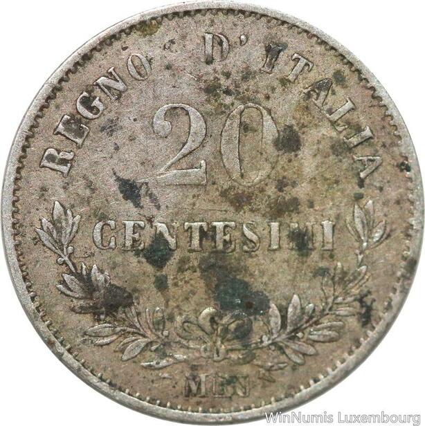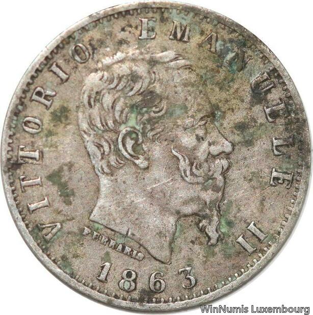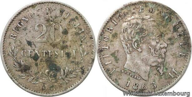 R8860 Italy 20 Centesimi Vittorio Emanuele II 1863 M BN Milan Silver -> M offer