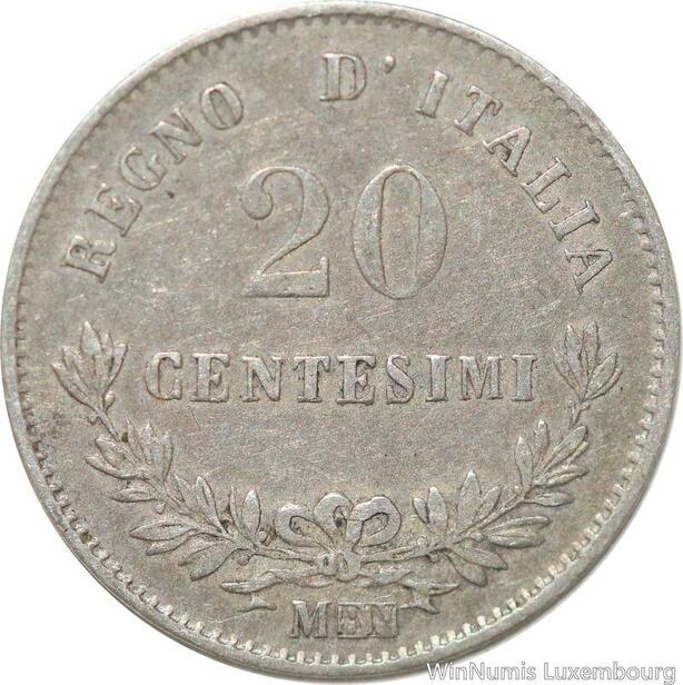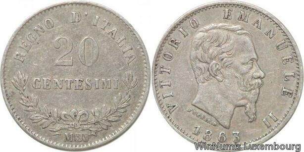 R8862 Italy 20 Centesimi Vittorio Emanuele II 1863 M BN Milan Silver -> M offer