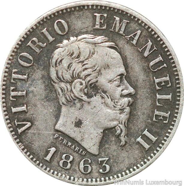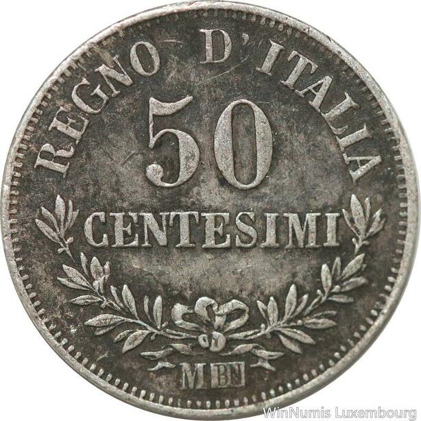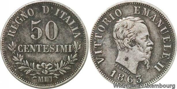 R8864 Italy 50 Centesimi Vittorio Emanuele II 1863 M BN Milano Silver -> M offer