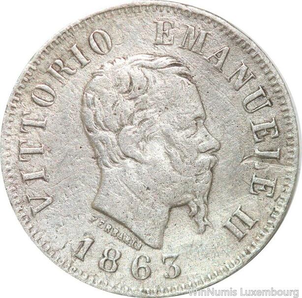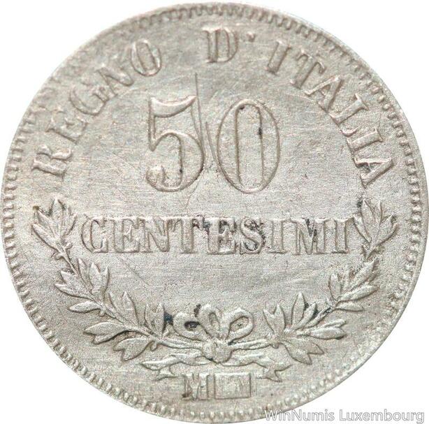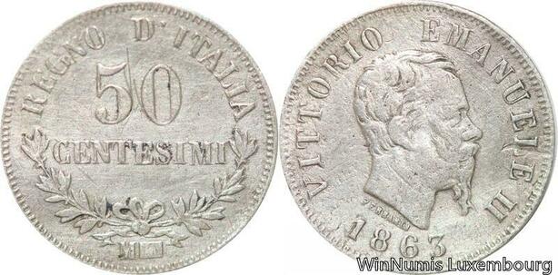 R8865 Italy 50 Centesimi Vittorio Emanuele II 1863 M BN Milano Silver -> M offer