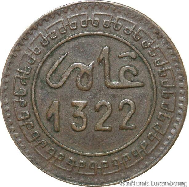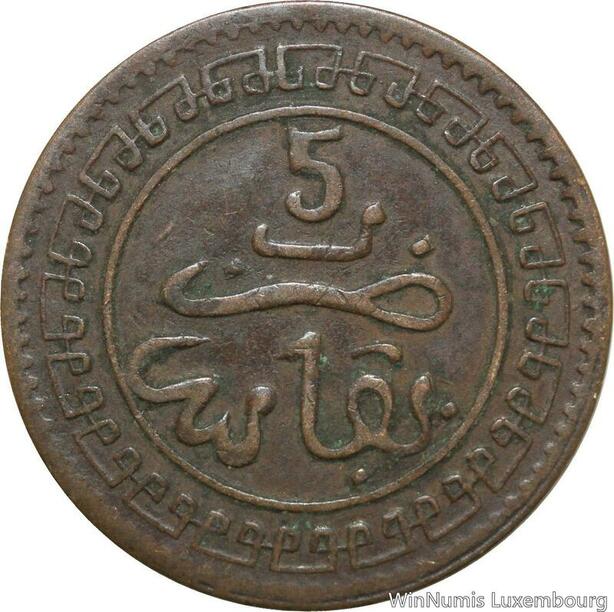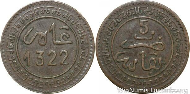 R8935 Rare Morocco 5 Mazounas Abd al-Aziz AH 1322 1904 Fes -> Make offer