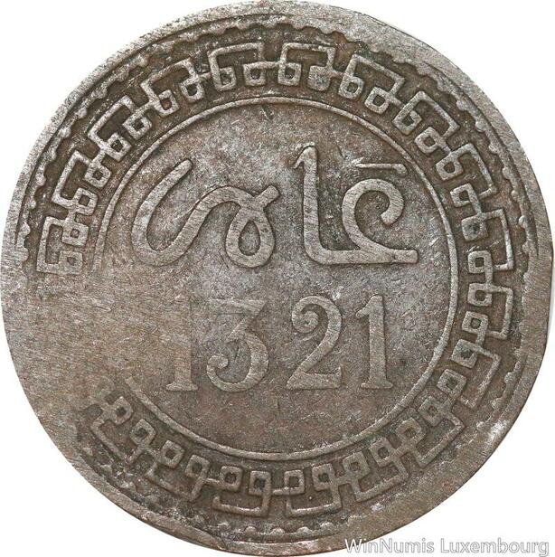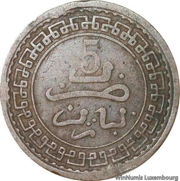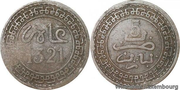 R8936 Rare Morocco 5 Mazounas Abd al-Aziz AH 1321 1903 Paris -> Make offer