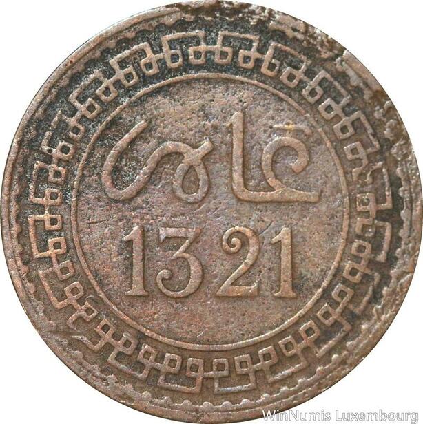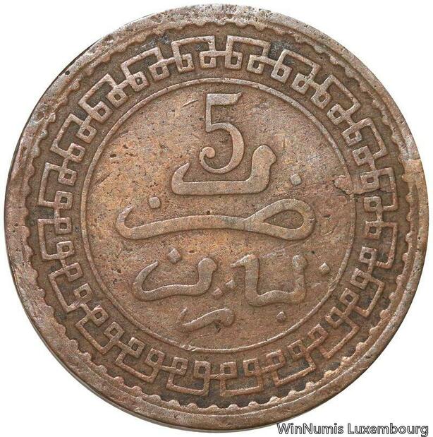 R8940 Rare Morocco 5 Mazounas Abd al-Aziz AH 1321 1903 Paris -> Make offer