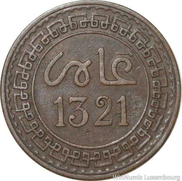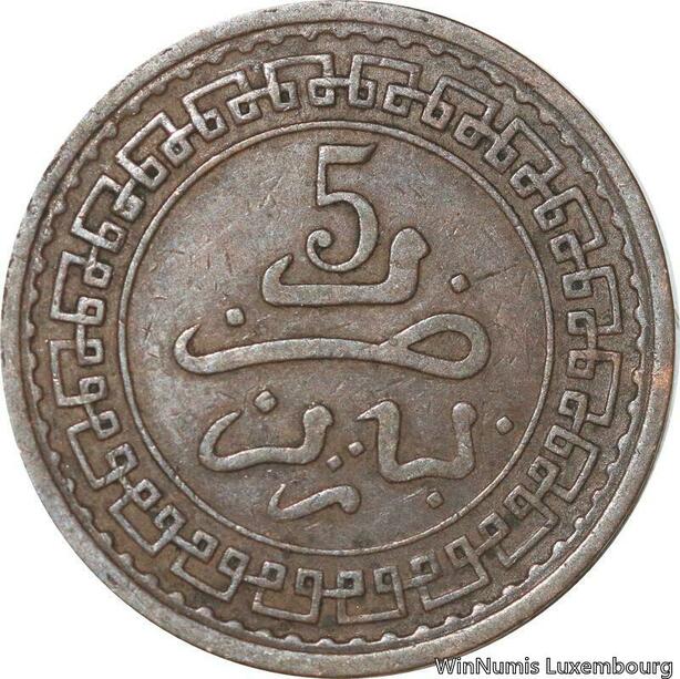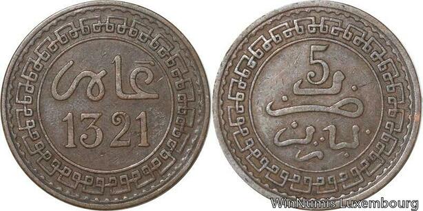R8945 Rare Morocco 5 Mazounas Abd al-Aziz AH 1321 1903 Paris -> Make offer