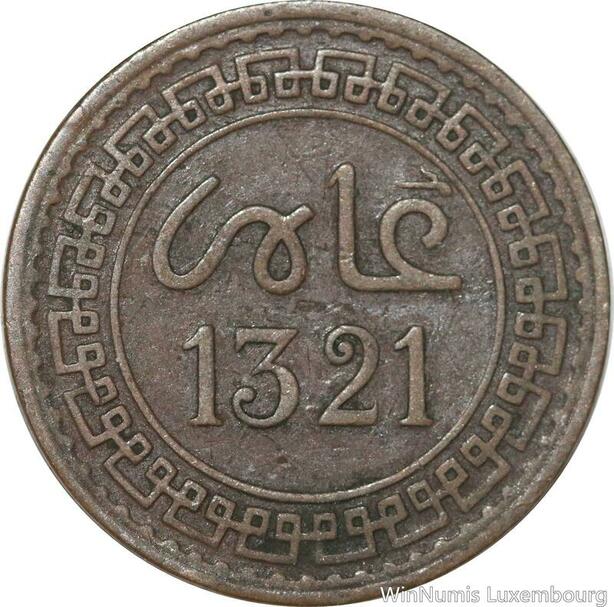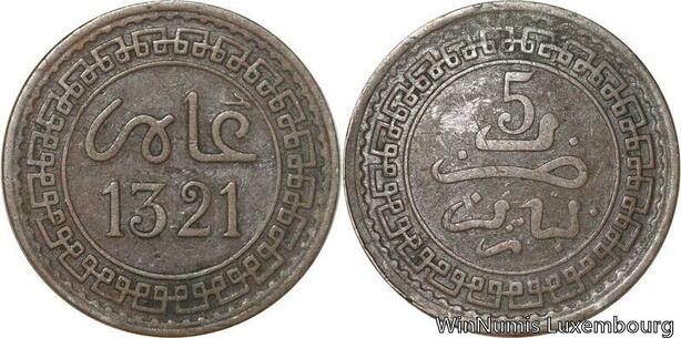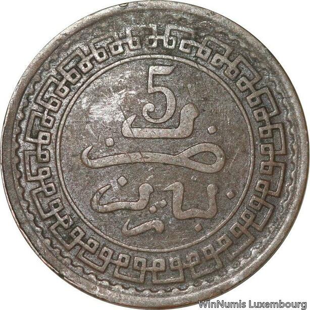 R8946 Rare Morocco 5 Mazounas Abd al-Aziz AH 1321 1903 Paris -> Make offer