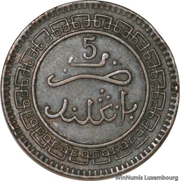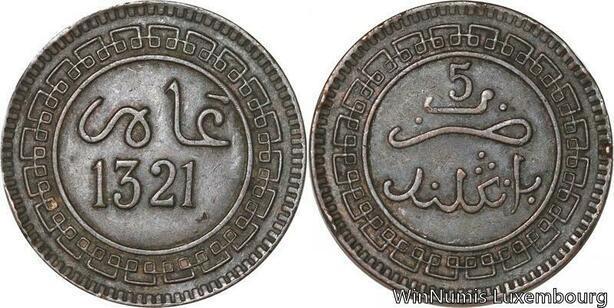 R8947 Rare Morocco 5 Mazounas Abd al-Aziz AH 1321 1903 Birmingham -> Make offer
