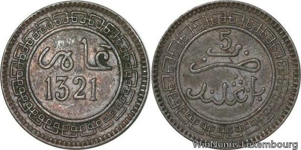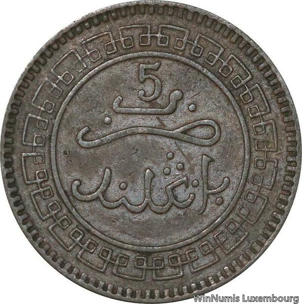 R8948 Rare Morocco 5 Mazounas Abd al-Aziz AH 1321 1903 Birmingham -> Make offer
