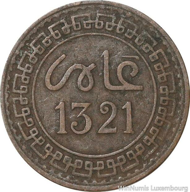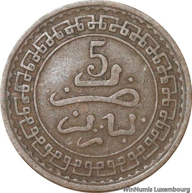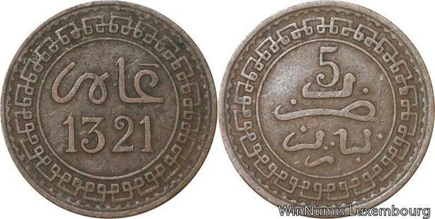 R8949 Rare Morocco 5 Mazounas Abd al-Aziz AH 1321 1903 Paris -> Make offer