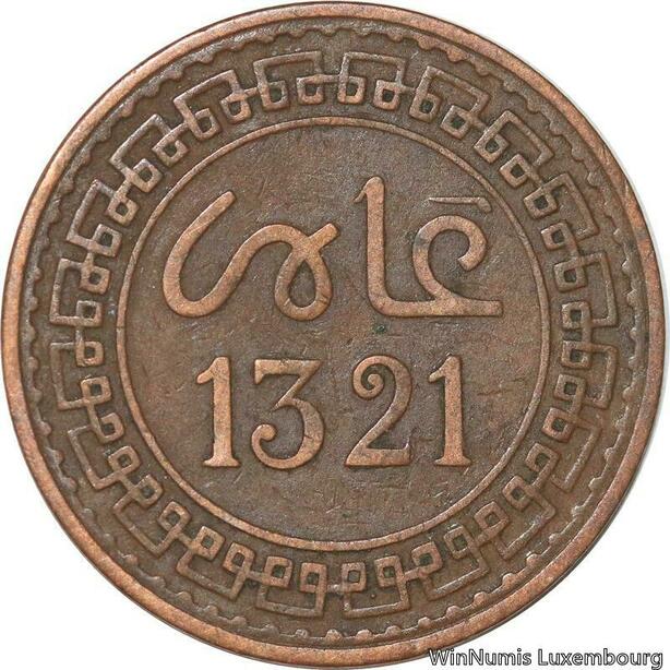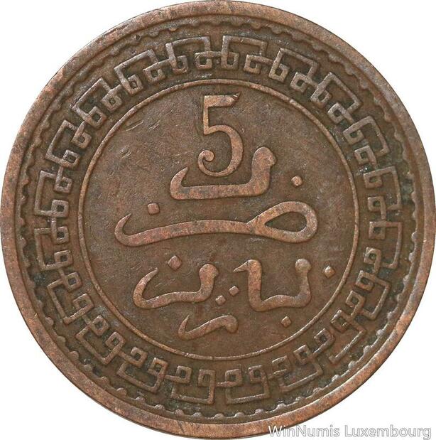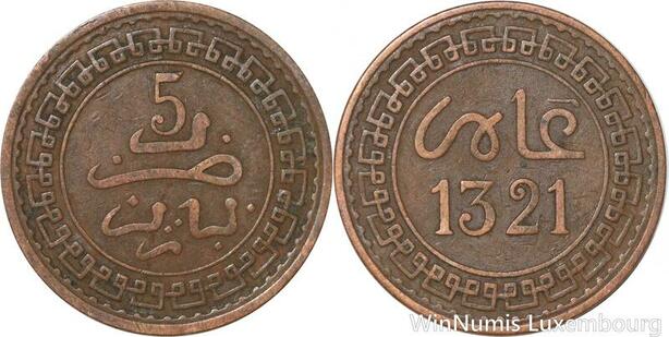 R8952 Rare Morocco 5 Mazounas Abd al-Aziz AH 1321 1903 Paris -> Make offer