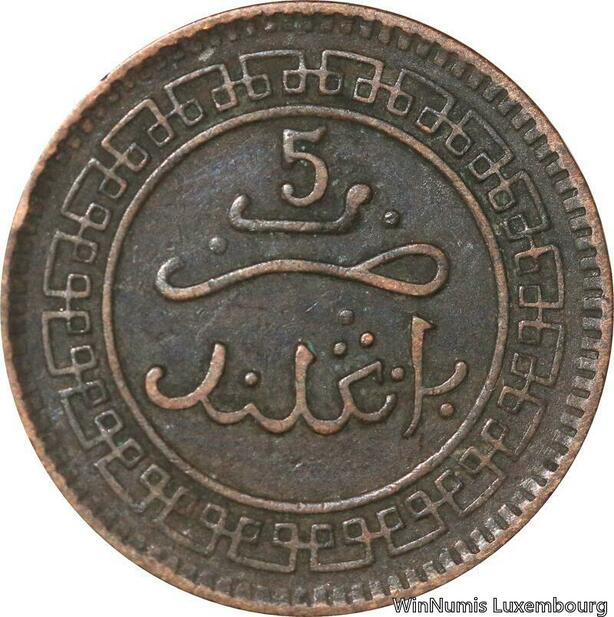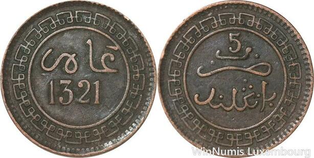 R8953 Rare Morocco 5 Mazounas Abd al-Aziz AH 1321 1903 Birmingham -> Make offer