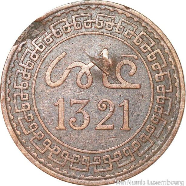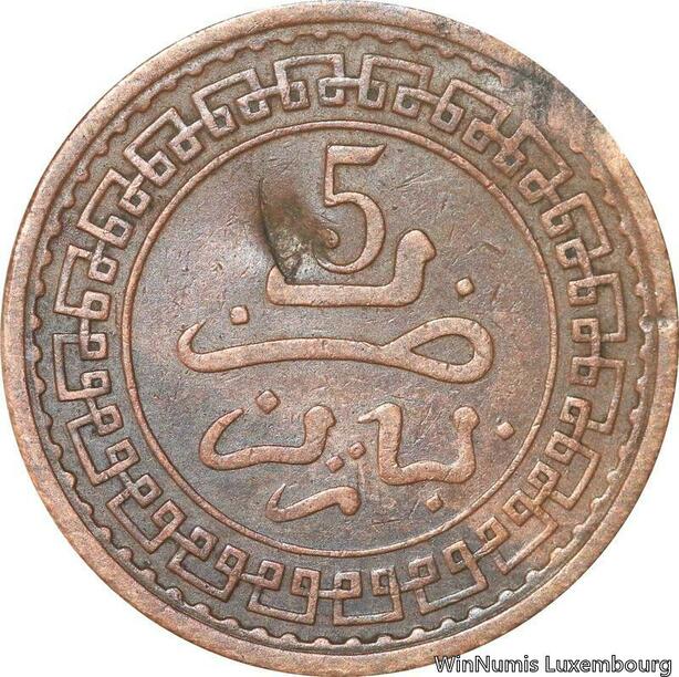 R8954 Rare Morocco 5 Mazounas Abd al-Aziz AH 1321 1903 Paris -> Make offer