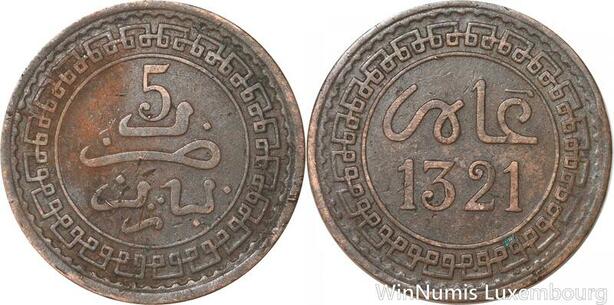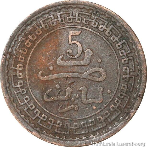 R8956 Rare Morocco 5 Mazounas Abd al-Aziz AH 1321 1903 Paris -> Make offer