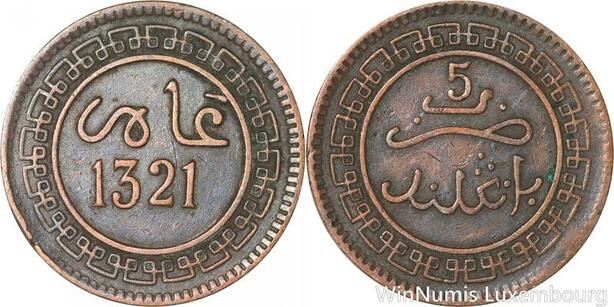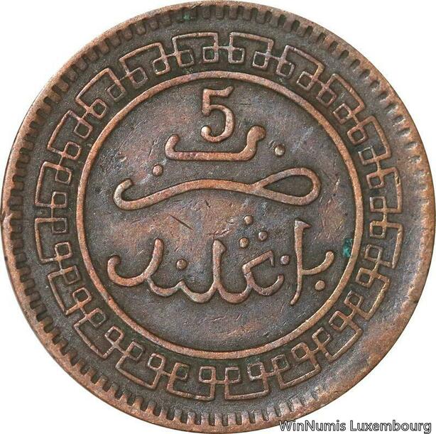 R8957 Rare Morocco 5 Mazounas Abd al-Aziz AH 1321 1903 Birmingham -> Make offer