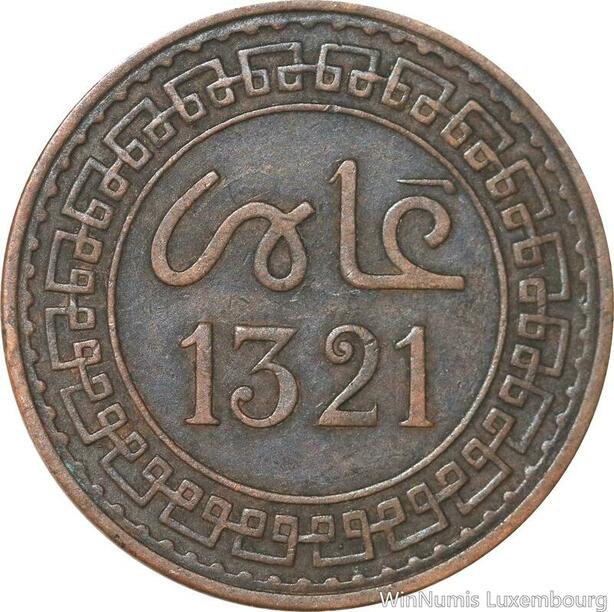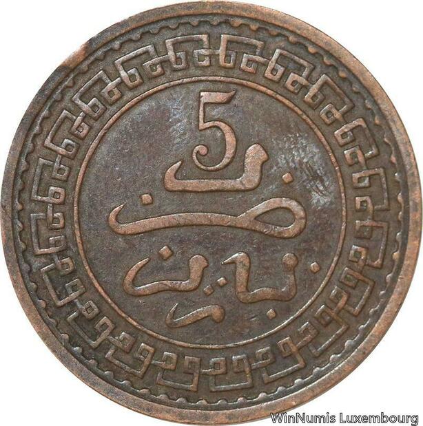 R8958 Rare Morocco 5 Mazounas Abd al-Aziz AH 1321 1903 Paris -> Make offer